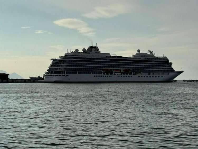 Kuşadası Ege Port Limanı hosted the Bahamian-flagged cruise ship named Viking Saturn last week, which had to change its route due to adverse weather conditions. Launched in 2023, the ship, distinguished by its modern Scandinavian design, docked at the Kuşadası Port with its 930 passengers.