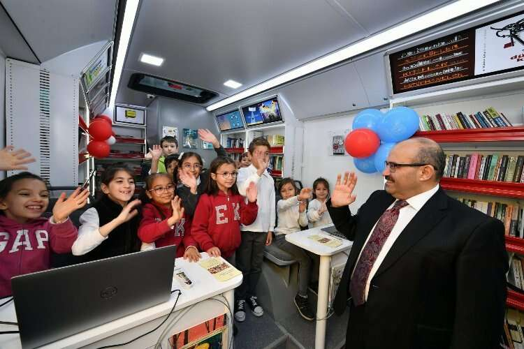 Governor Ustaoğlu, accompanied by students, toured the library and emphasized the significant contribution of the vehicle, which is equipped with laptops, desktop computers, a printer, a projector, an LCD TV, a DVD player, seating groups designed for readers, and all necessary equipment for mobile library staff, to education. During his visit to the school, Governor Ustaoğlu encountered the keen interest of the students and advised them to make use of the library resources.