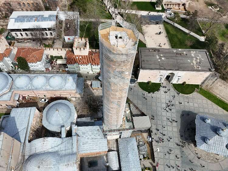 2. Bayezid Minaresi'nde söküm işlemi havadan görüntülendi