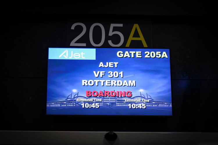 İstanbul'dan Amsterdam'a seferleri olan AJet'in Hollanda'daki ikinci destinasyonu Rotterdam oldu. Sabiha Gökçen Havalimanı'ndan kalkan uçak, 3 saat 40 süren yolculuğun ardından Rotterdam The Hauge Havalimanı'nda havacılık geleneği olarak su takı ile karşılandı. Rotterdam'a yapılan törene; Türkiye Cumhuriyeti Rotterdam Başkonsolosu Sevgi Kısacık, Turizm Müşaviri Pınar Bilgen Ermiş, AJet üst yönetimi ve havalimanı yöneticileri katıldı.
