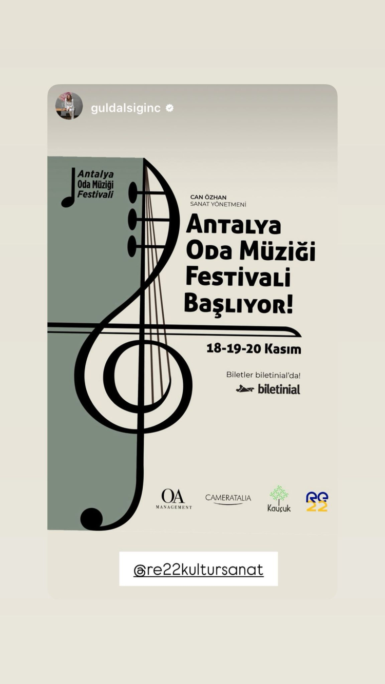 Antalya Oda Müziği Festivali, 18-20 Kasım'da gerçekleşiyor. Re22 Kültür Sanat ve Kauçuk Otel iş birliği ile düzenlenen etkinlik, oda müziği severlere üç gün boyunca zengin bir müzikal deneyim sunacak. Biletler Biletinial üzerinden satışta.