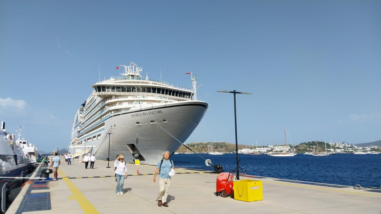 Öte yandan, Bahamalar Bayraklı 180 metre boyundaki Seabourn Encore isimli kurivaziyer gemisinden de Amerikalı 560 yolcu ve 416 personel Bodrum'a geldi. Gölge yerlerde gezmeyi tercih eden turistler Bodrum'un tarihi ve kültürel alanlarını gezdi.