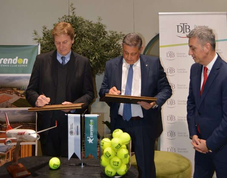 Corendon Tennis Club Kemer projesi ile Türkiye’deki tenis sporuna yeni bir soluk getirmeyi hedefleyen Corendon Turizm Grubu, Alman Tenis Federasyonu ile yeni iş birliğine imza attı. ITB Berlin Uluslararası Turizm Fuarı'nda düzenlenen imza töreni, Corendon Turizm Grubu Yönetim Kurulu Başkanı Yıldıray Karaer ve Alman Tenis Federasyonu (DTB) Başkanı Dietloff von Arnim'in katılımlarıyla gerçekleştirildi. 2027 yılına kadar sürecek iş birliği kapsamında uluslararası faaliyet gösteren Corendon Turizm Grubu, “mybigpoint” oyuncu portalının tekler kategorisi ve kulüpler arası yarışların yeni isim hakkı sahibi ve aynı zamanda DTB-Bundesliga portalının sunucusu oldu.