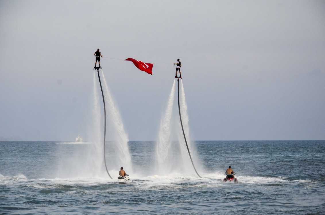 1 Temmuz Kabotaj Bayramı'nın da kutlandığı etkinlik dolayısıyla Taşkıran sahiline çok sayıda vatandaş akın ederken, Akdeniz Bölge Komutanlığına bağlı askerler, altına taşıyıcı eklenen 1 kilometrelik Türk bayrağını deniz yüzeyine taşıdı. Taşıma işlemine zaman zaman vatandaşlar da eşlik etti. Vali Ali Hamza Pehlivan ile beraberindeki heyet, Pompeipolis sahilinde Akdeniz Bölge Komutanlığına bağlı helikopter ve gemiler eşliğinde sergilenen flyboard gösterilerini izledi. Deniz yüzeyinde helikopter ve gemilerle gerçekleştirilen gösteriler, adeta görsel şölene dönüşürken izleyenleri hayran bıraktı.
