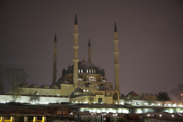 Hava sıcaklığının sıfırın altına düştüğü kent merkezinde kar yağışıyla birlikte özellikle tarihi alanlar beyaza büründü. UNESCO Dünya Kültür Mirası Listesi'nde yer alan Selimiye Camii başta olmak üzere birçok tarihi yapı beyaz örtüyle kaplandı.