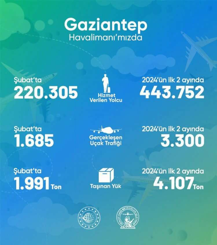 Gaziantep Havalimanı’mızda şubat ayında 220.305 yolcuya hizmet verildi.