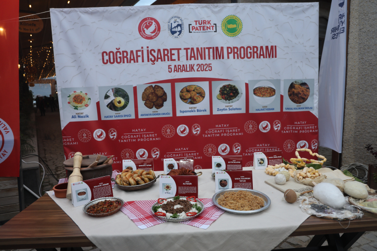 Asrın felaketi sonrası 32 ürüne coğrafi işaret alındığını ifade eden İl Planlama ve Koordinasyon Müdürü Mustafa Örgüt, "Sayın Valimiz Mustafa Masatlı'nın talimatları ile asrın felaketinden sonra coğrafi işaret çalışmalarına başladık. Mutfağınızda 600'den fazla yemek ve tatlı çeşitli bulunuyor. Bunları Türkiye ve dünyaya tanıtmak için başladık. Coğrafi işaret, sosyal ekonomik olması açısından oldukça önem arz etmektedir. Bizler de Hatay Valiliği olarak yöresel ve simge ürünlerini sadece Türkiye'de değil dünyada da tanıtmak için Avrupa Birliği coğrafi işaret çalışmalarına başlamış bulunmaktayız. Türk Patent ve Marka Kurumu verilerine göre, Türkiye de bugün itibariyle bin 788 coğrafi işaret ürün bulunmaktadır. Coğrafi işarette Türkiye'de yapılan başvuru sayısı 858'dir. Hatay'a baktığımızda zaman bugün itibariyle 57 coğrafi işaretli ürün var. Deprem döneminde 25 coğrafi işaretle 25'inci sıradayken bugün 57 coğrafi işaretle birlikte Türkiye'de 5'inci sıradadır" ifadelerini kullandı.