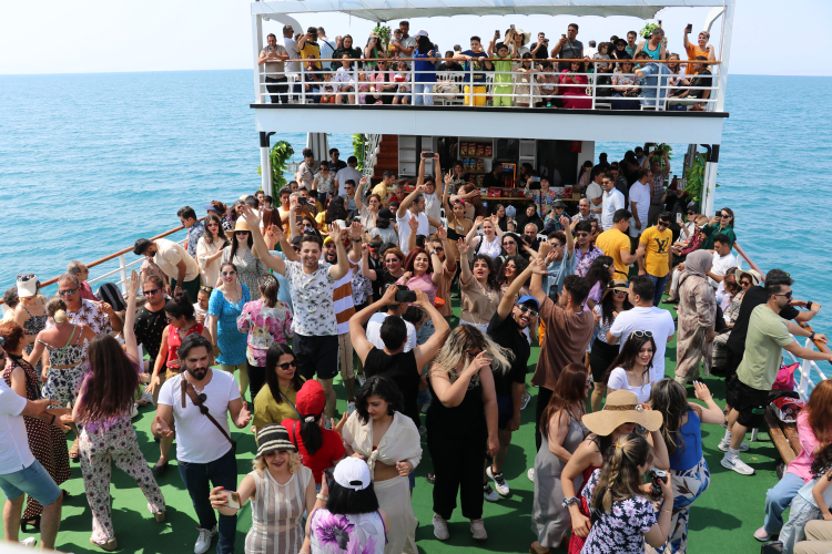Okulların tatil olması nedeniyle her fırsatta Van'a gelen İranlı turistler, tatilin keyfini çıkarıyor. Akşamları kapalı mekanlarda eğlenip, gündüzleri ise soluğu Van Gölü'nde alan İranlı turistler yaptıkları alışverişle de kentin ekonomisine büyük katkı sağlıyor. Gün içerisinde cadde ve sokakları gezerek bol bol alışveriş yapan İranlılar, tekne ile açıldıkları Van Gölü'nün eşsiz güzelliğinden faydalanıyor. Yıllardır Van'da turizm sektöründe hizmet veren Sinan Başak tarafından hazırlanan Liman Tour Sinan Kaptan gemisi ile Van Gölü'ne açılan İranlı turistler, gölün keyfini çıkarıyor. 350 kişi kapasiteli ve 4 kattan oluşan gemide dans eden ve yemek yiyen İranlı turistler, köpük partisinin ardından Van Gölü'nün mavi sularına kendilerini bırakıyor.