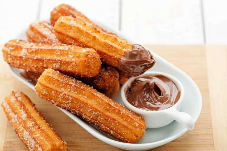 9. Churros con Chocolate: Madrid'in en ünlü tatlılarından biri olan Churros con Chocolate, kızarmış hamur şeritleri ve yoğun, sıcak çikolata sosuyla servis ediliyor. Özellikle sabah kahvaltılarında veya atıştırmalık olarak tercih ediliyor.