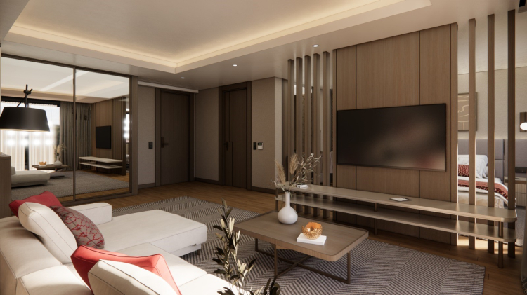 Bölgenin mimari dokusuna uygun tasarlanan otel, standart ve süit odaların yanı sıra aileler için residence konseptli seçenekler de sunacak. Türkiye’nin en geniş standart odalarına sahip otellerinden biri olması hedeflenen projede, misafir konforuna öncelik veriliyor.