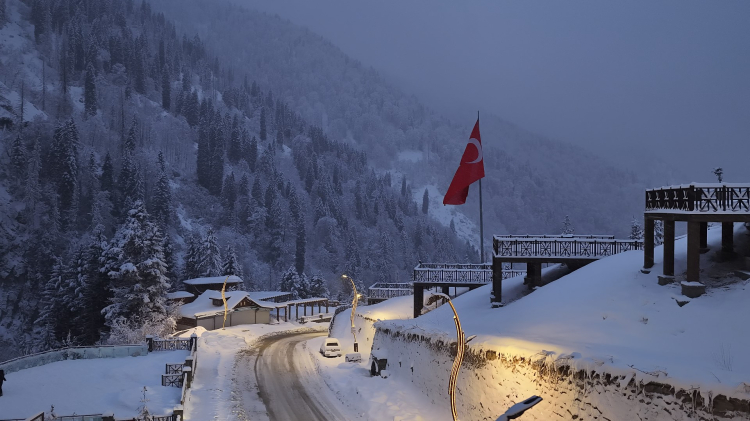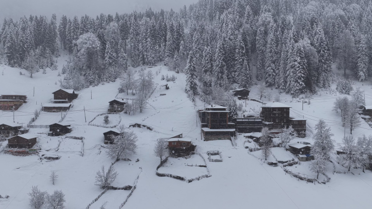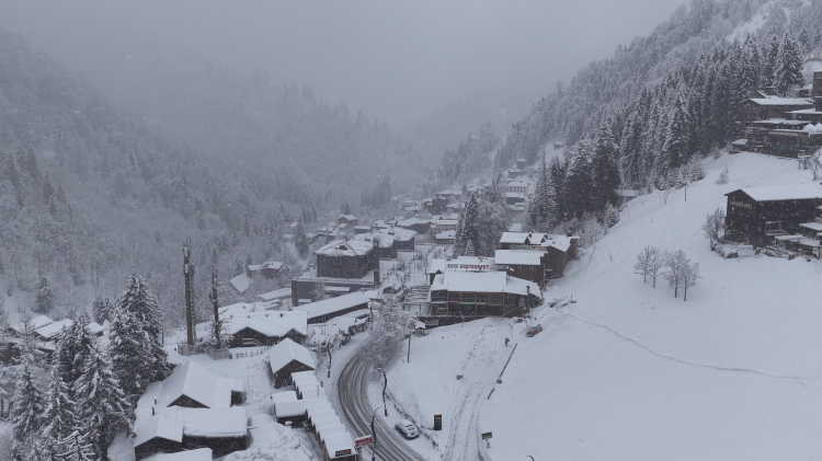 Doğu Karadeniz'in gözde turizm merkezlerinden Ayder Yaylası, kar yağışının etkisi altında bulunuyor.