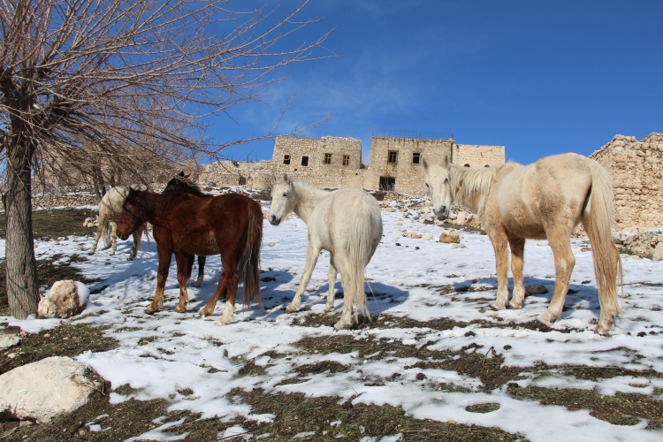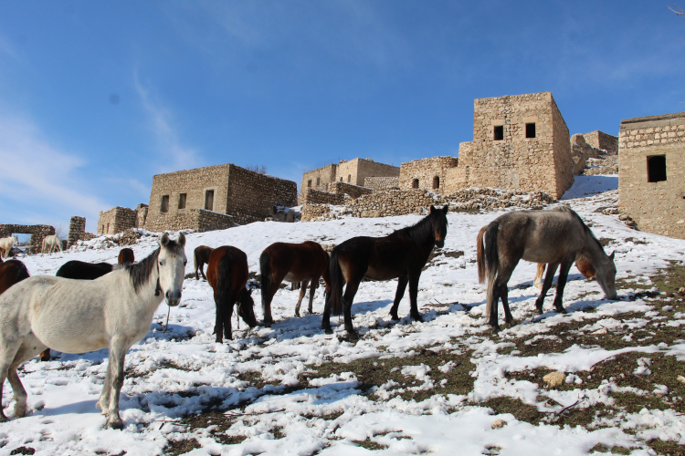 Şırnak'ın İdil ilçesine bağlı Gabar Dağı eteklerinde bulunan Mağara köyündeki tarihi varlıklarının yanı sıra sunduğu doğa güzellikleri, yılkı atlarına da ev sahipliği yapıyor. Gabar Dağında yaşayan yılkı atları, bölgede karın beyaza bürüdüğü alanda dörtnala koşarken görüntülendi.
